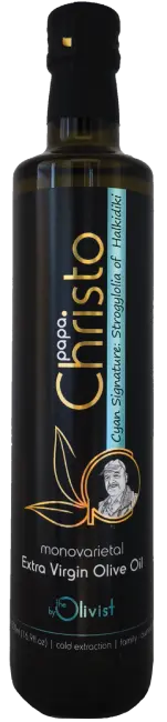 Το Papa Christo Cyan Signature Mid Harvest είναι ένα μονοποικιλιακό εξαιρετικό παρθένο ελαιόλαδο χαμηλής οξύτητας και ψυχρής έκθλιψης. Αποτελεί την αποτύπωση της στιγμής που ο καρπός της Στρογγυλολιάς φτάνει στην ιδανική του ωριμότητα, προσφέροντας ένα ελαιόλαδο μεστής γεύσης και πλούσιας υφής.